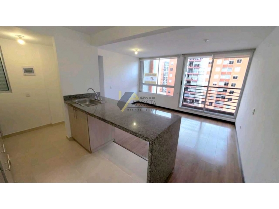 Área de 66 M2 en un 8 piso vista interior con ascensor, consta de sala comedor con balcón, cocina integral, zona de lavandería, tres habitaciones, dos baños, estudio y parqueadero cubierto.